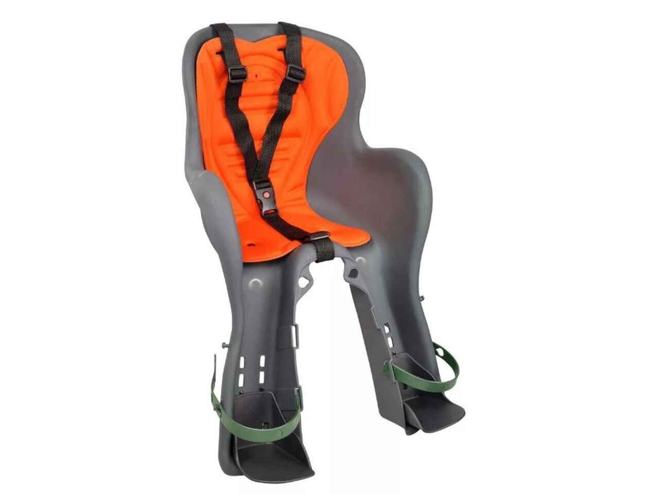 Детское сиденье из качественного пластика, на стальной рамке. Подходит на большинство рам, тестирован по нормам безопасности eu.