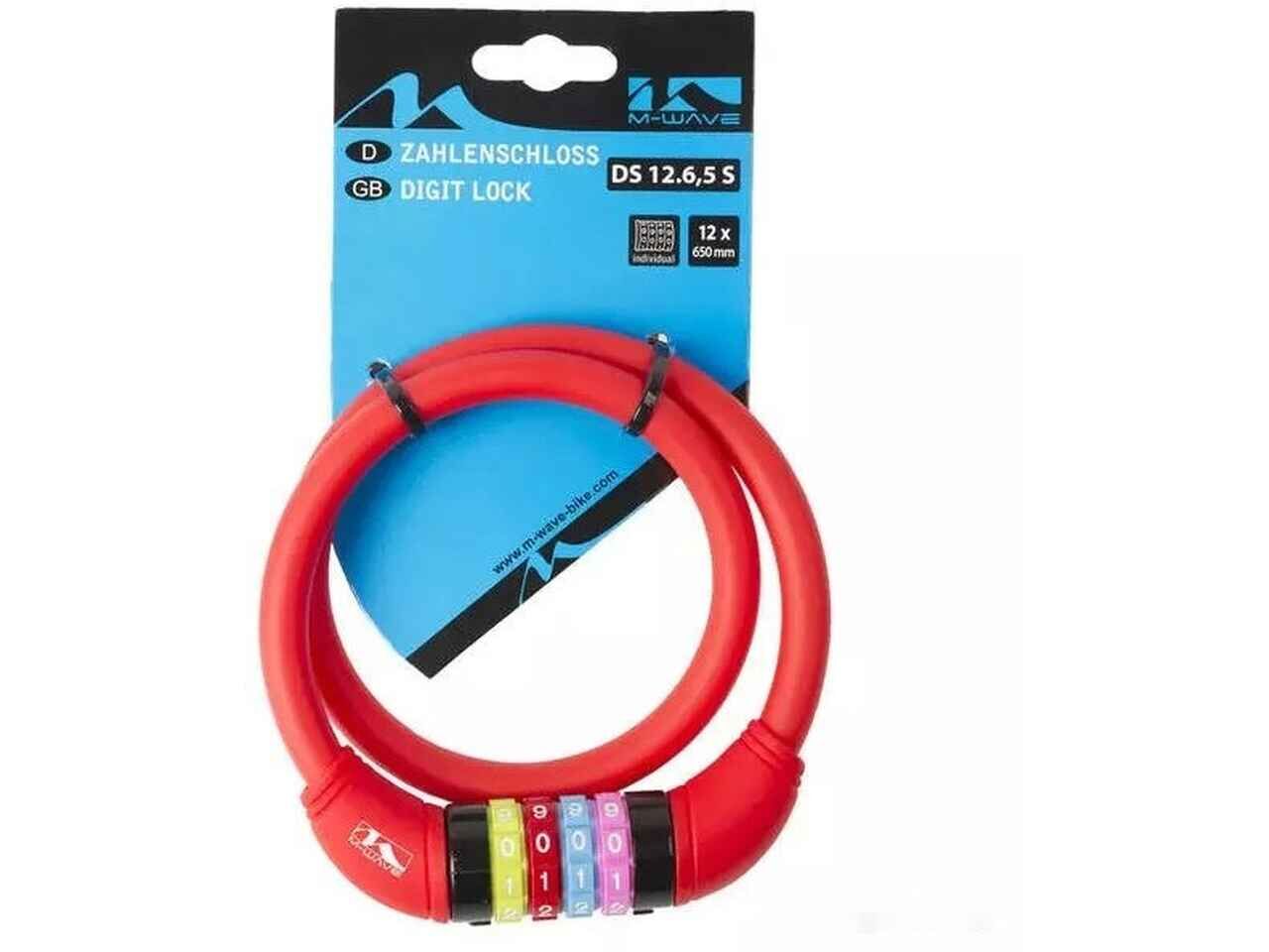 Тросовый велосипедный замок M-Wave DS 12.6.5 S (красный)