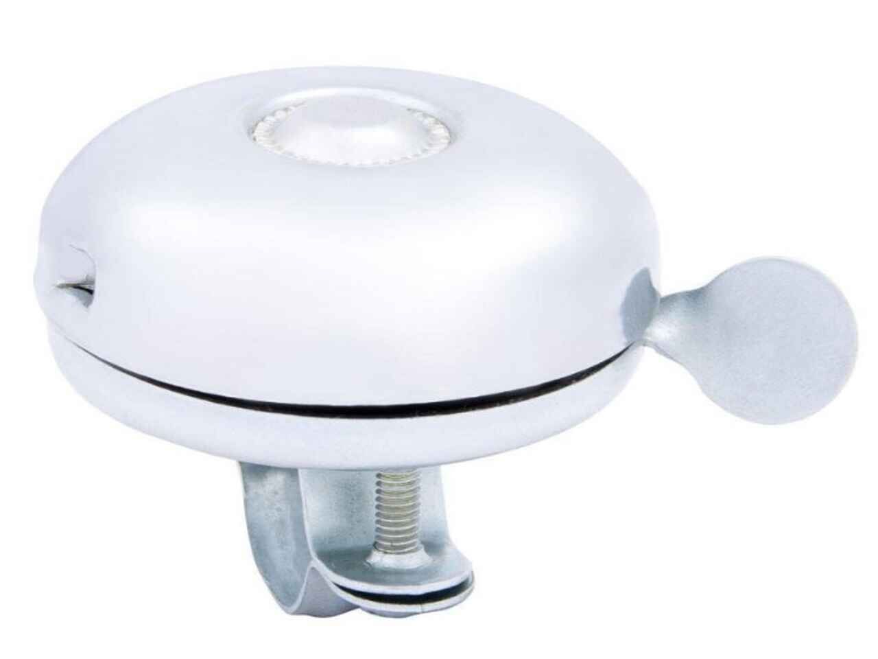 Стальной велосипедный звонок классической формы с хромированной отделкой. Имеет громкий звук и стальной зажим с двумя винтами.