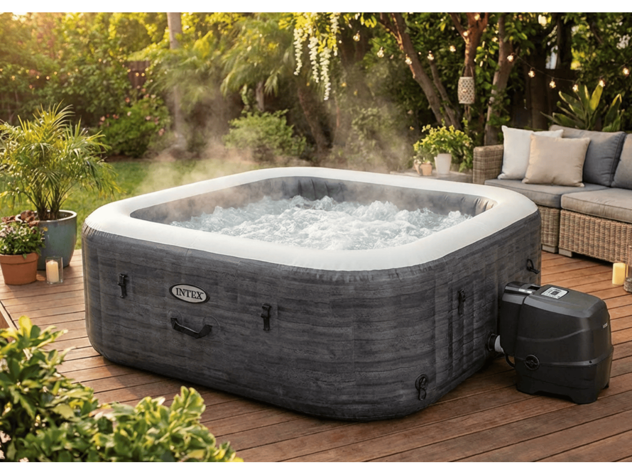 INTEX Greystone Deluxe — надувной бассейн с массажными форсунками для настоящего отдыха на даче