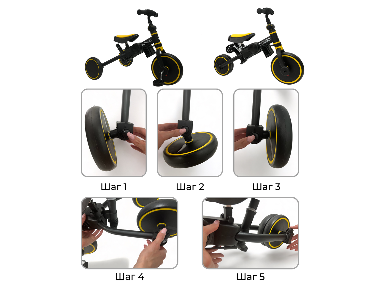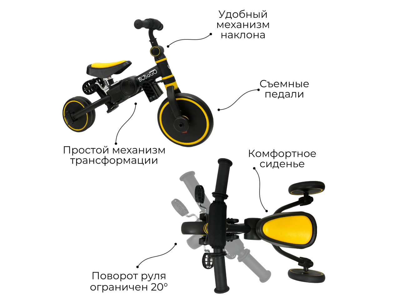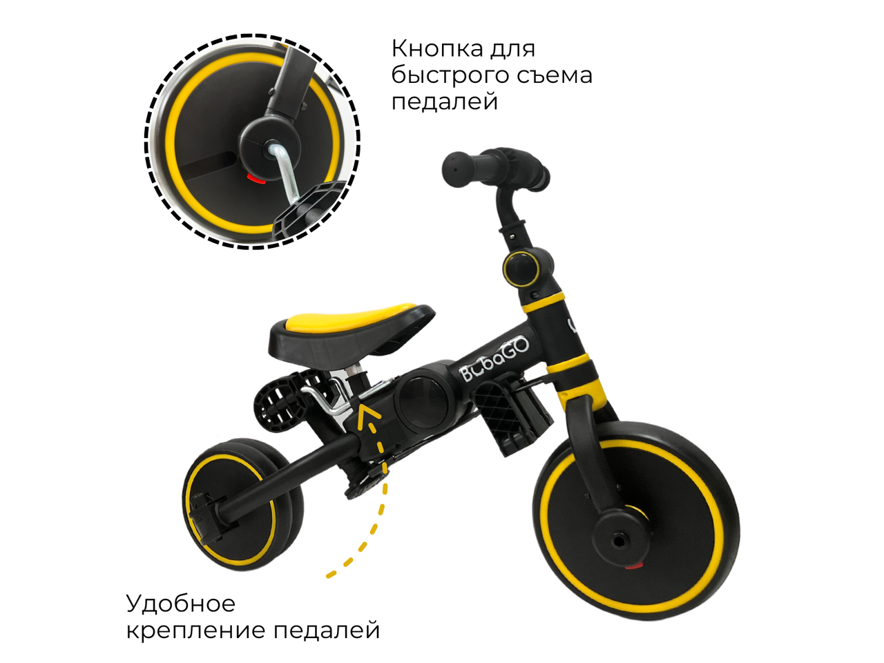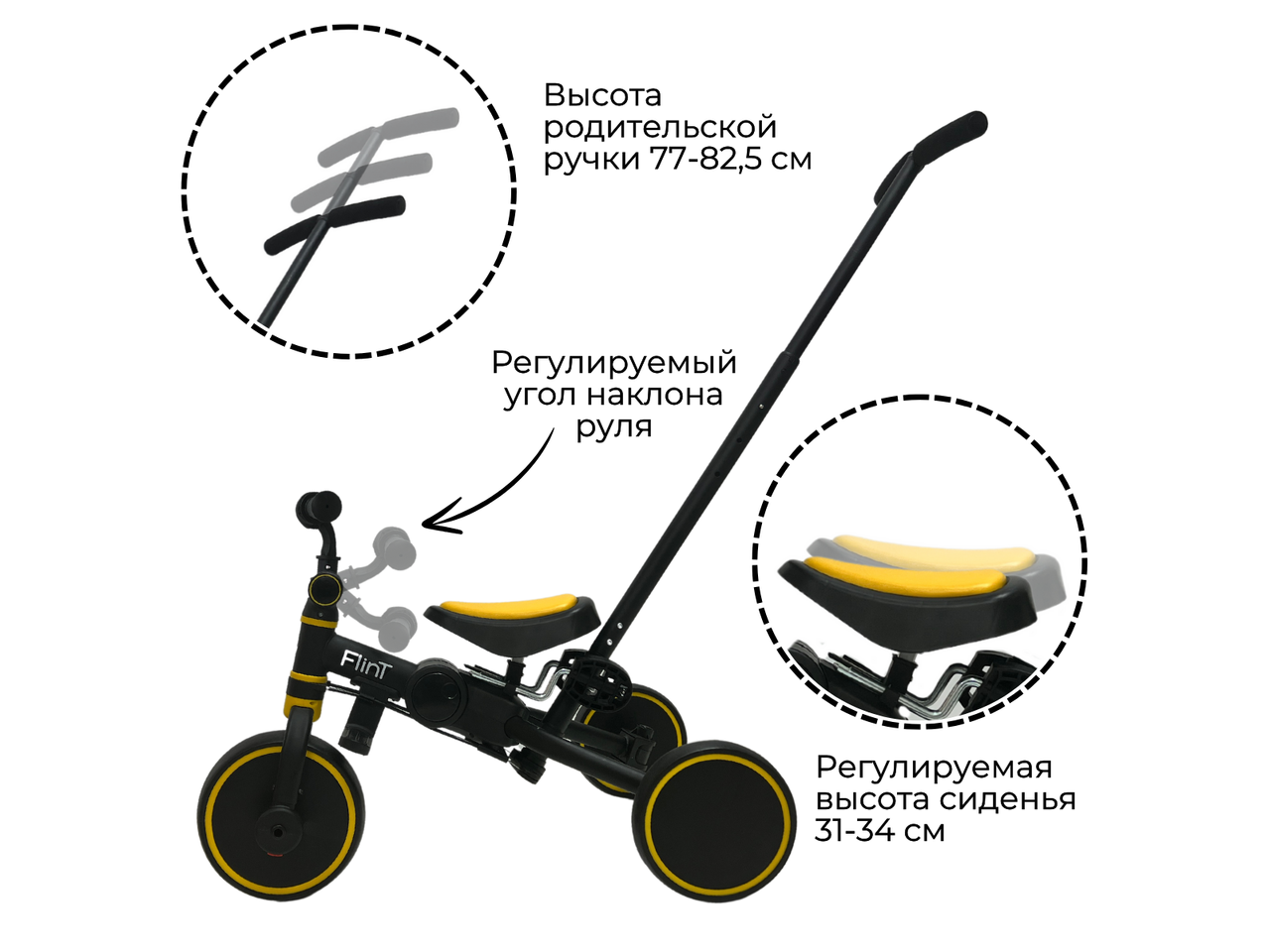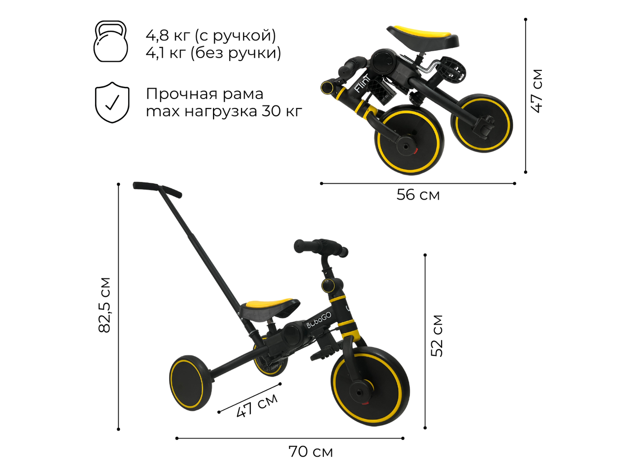 Беговел Bubago Flint 4 в 1 (с родительской ручкой, желтый) BG-FPY- 109-11