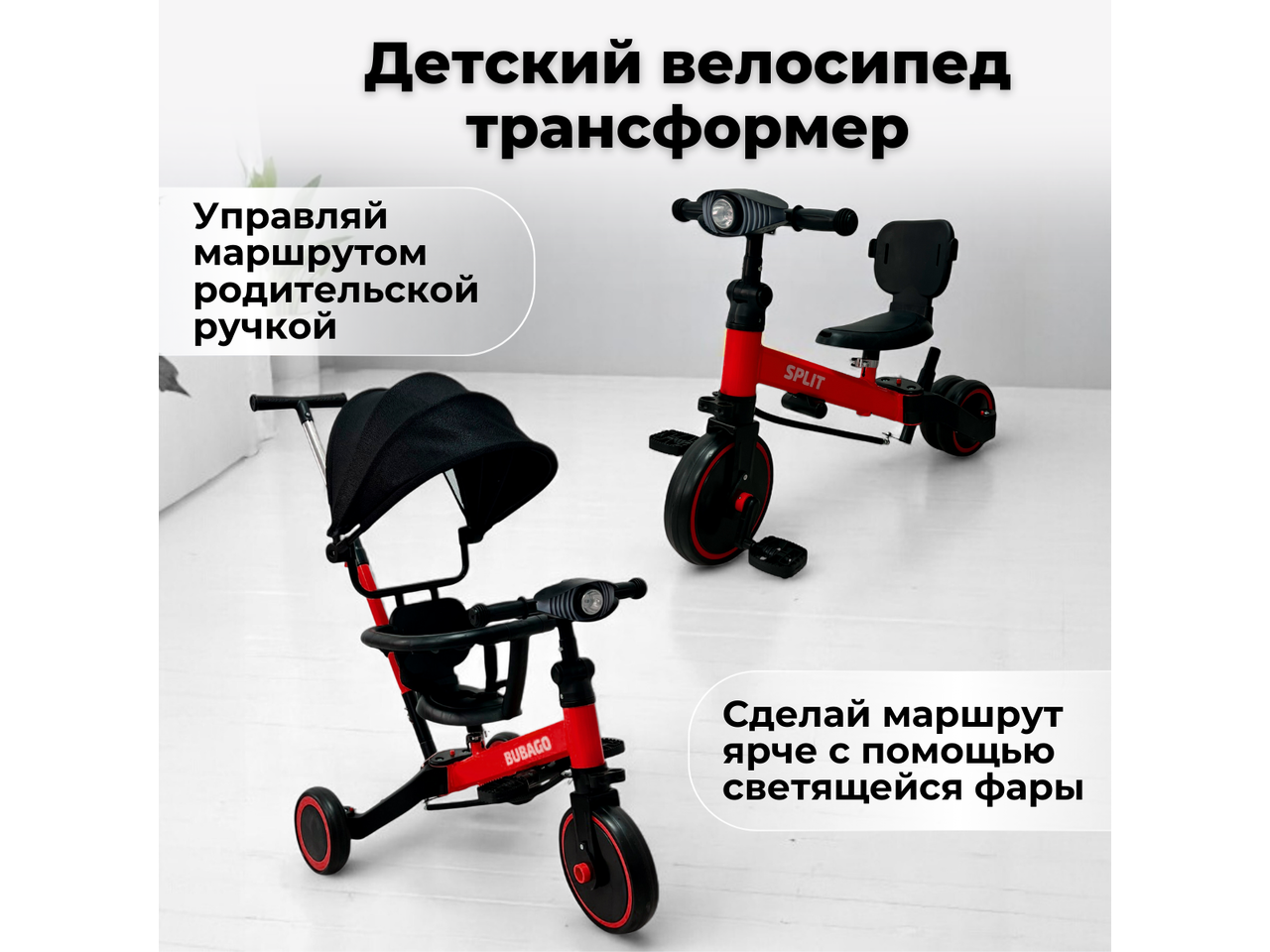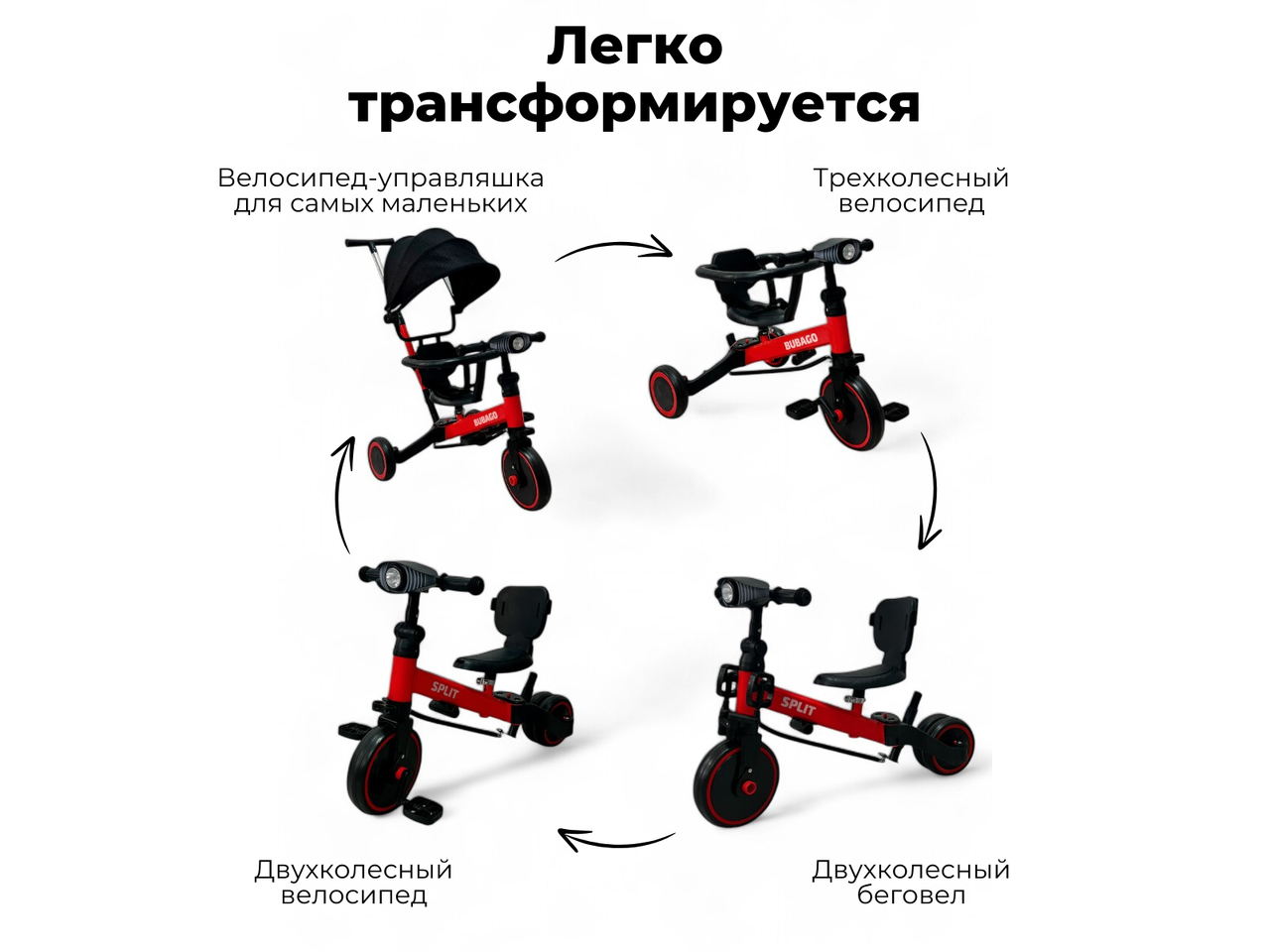 Беговел Bubago Split 4 в 1 (BG SPY-158-1) красный с ручкой