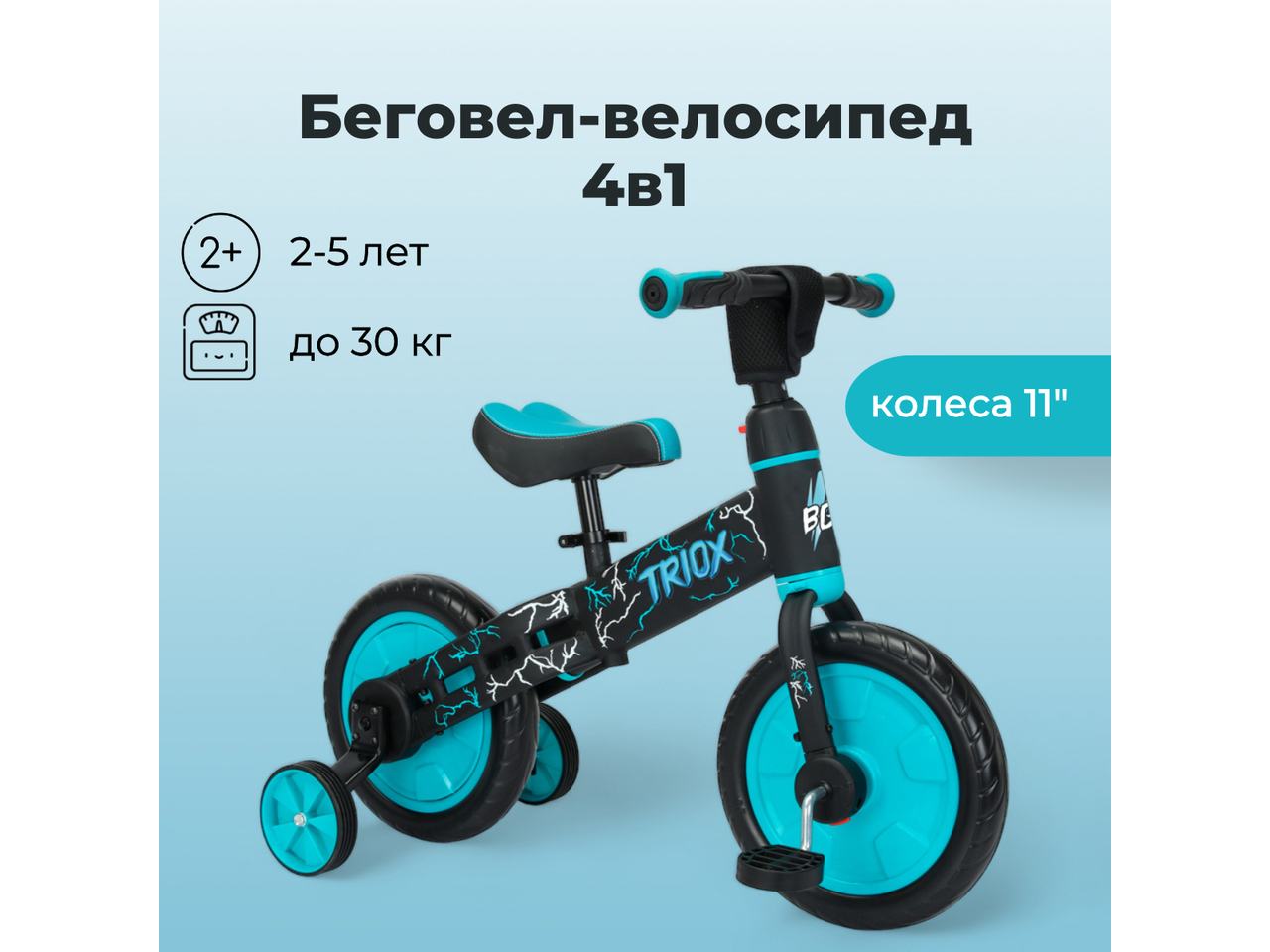 Беговел Bubago Triox трансформер (черный/синий)