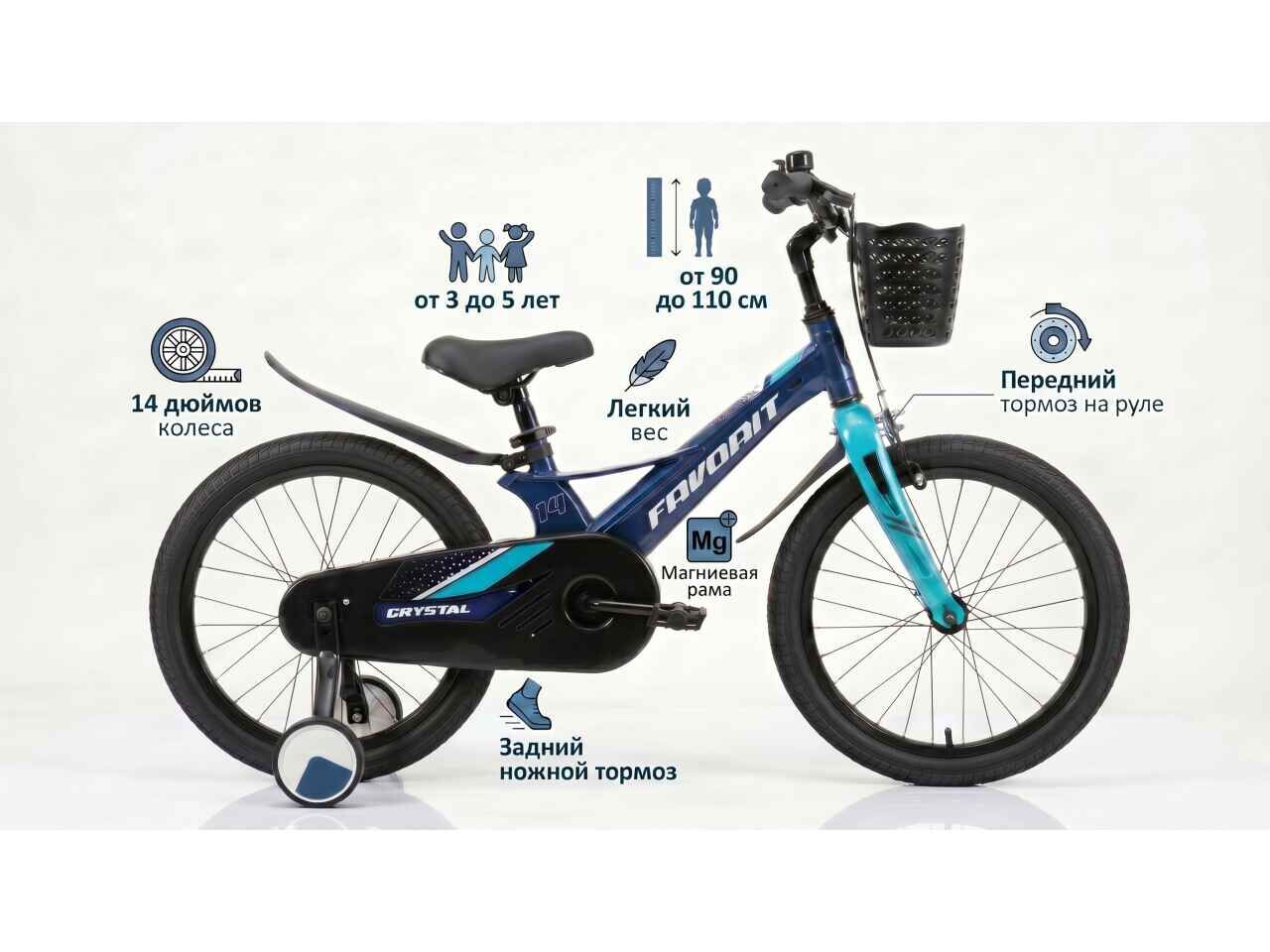 Favorit CRYSTAL 14 — это первый «взрослый» велосипед для вашего ребёнка. Лёгкий, безопасный и максимально понятный. С ним обучение происходит без слёз и стресса, а вы будете спокойны за каждую прогулку.