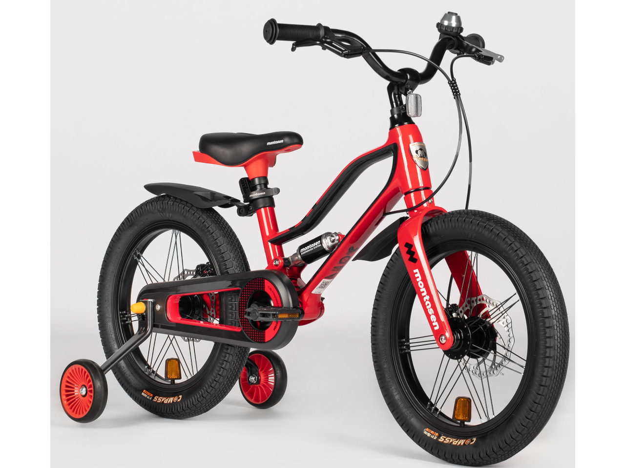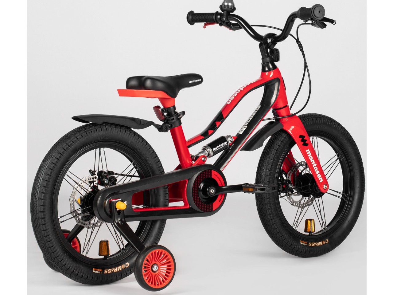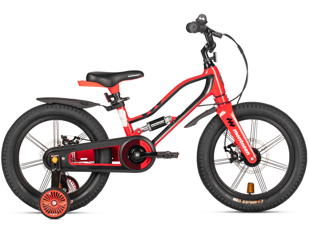 Детский велосипед Montasen MBS01 красный — повышенный комфорт с задним амортизатором и двойной безопасностью тормозов