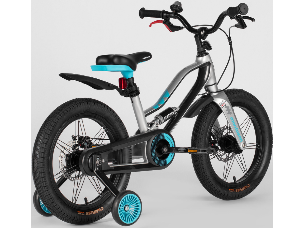 Montasen MBS01 в серебристом цвете — это велосипед с повышенным уровнем комфорта для детей 4-6 лет. Его ключевые преимущества — задний амортизатор для плавности хода, надежные дисковые тормоза для безопасности и полная готовность к использованию прямо из коробки.
