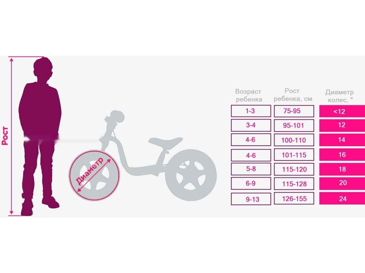 Детские велосипеды в отличие от взрослых, подбираются по размеру колеса.