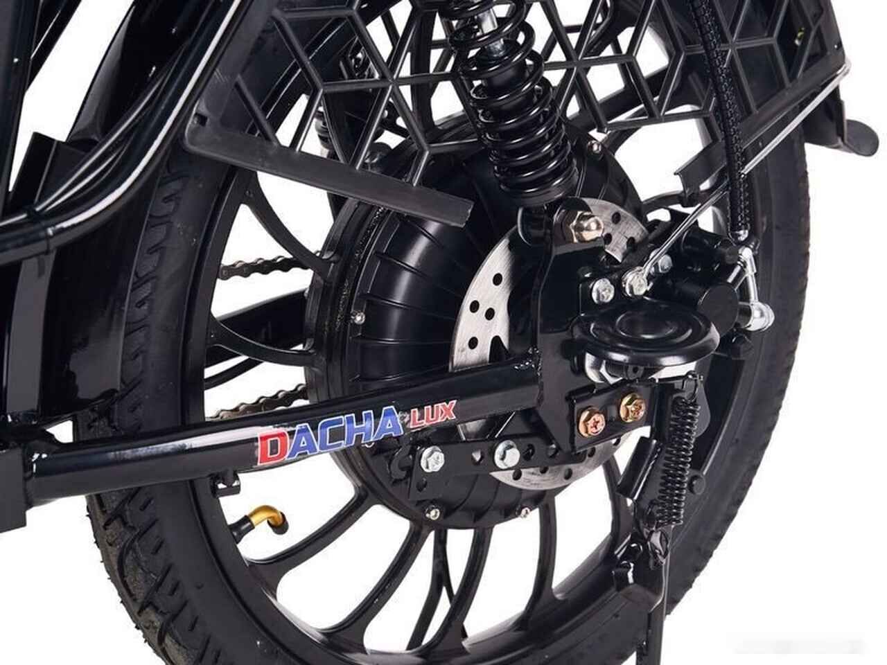 Как и базовая модель, Dacha Lux оснащена полноценной системой амортизации: амортизационной вилкой спереди и задним амортизатором. Эта комбинация обеспечивает плавный ход, эффективно гася вибрации от неровного асфальта, грунтовых дорог и легкого бездорожья, что особенно важно для сохранения комфорта на длинных дистанциях.
