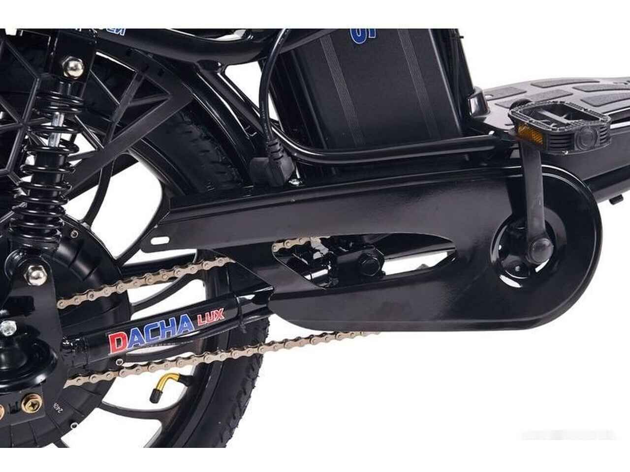 Модель Dacha Lux выделяется на фоне классических электровелосипедов благодаря продуманному дизайну и улучшенной эргономике. Удобная посадка, качественные материалы отделки и стильный черный цвет делают каждую поездку не только комфортной, но и эстетически приятной.