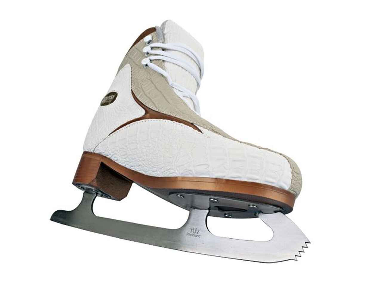 - Лезвие: Узкое и длинное с зубцами на передней части (зубцы помогают выполнять прыжки и сложные элементы).