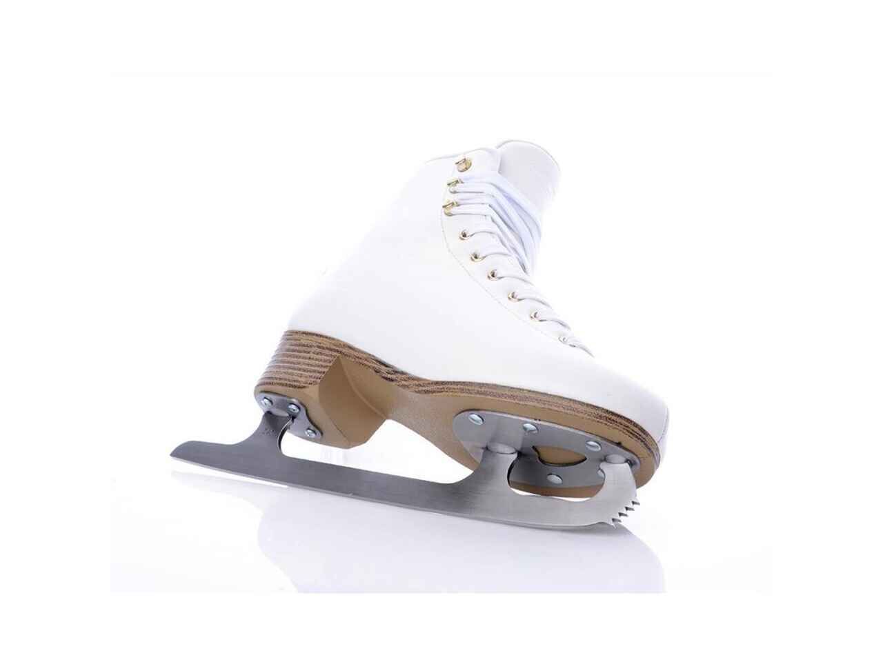 - Лезвие: Узкое и длинное с зубцами на передней части (зубцы помогают выполнять прыжки и сложные элементы).