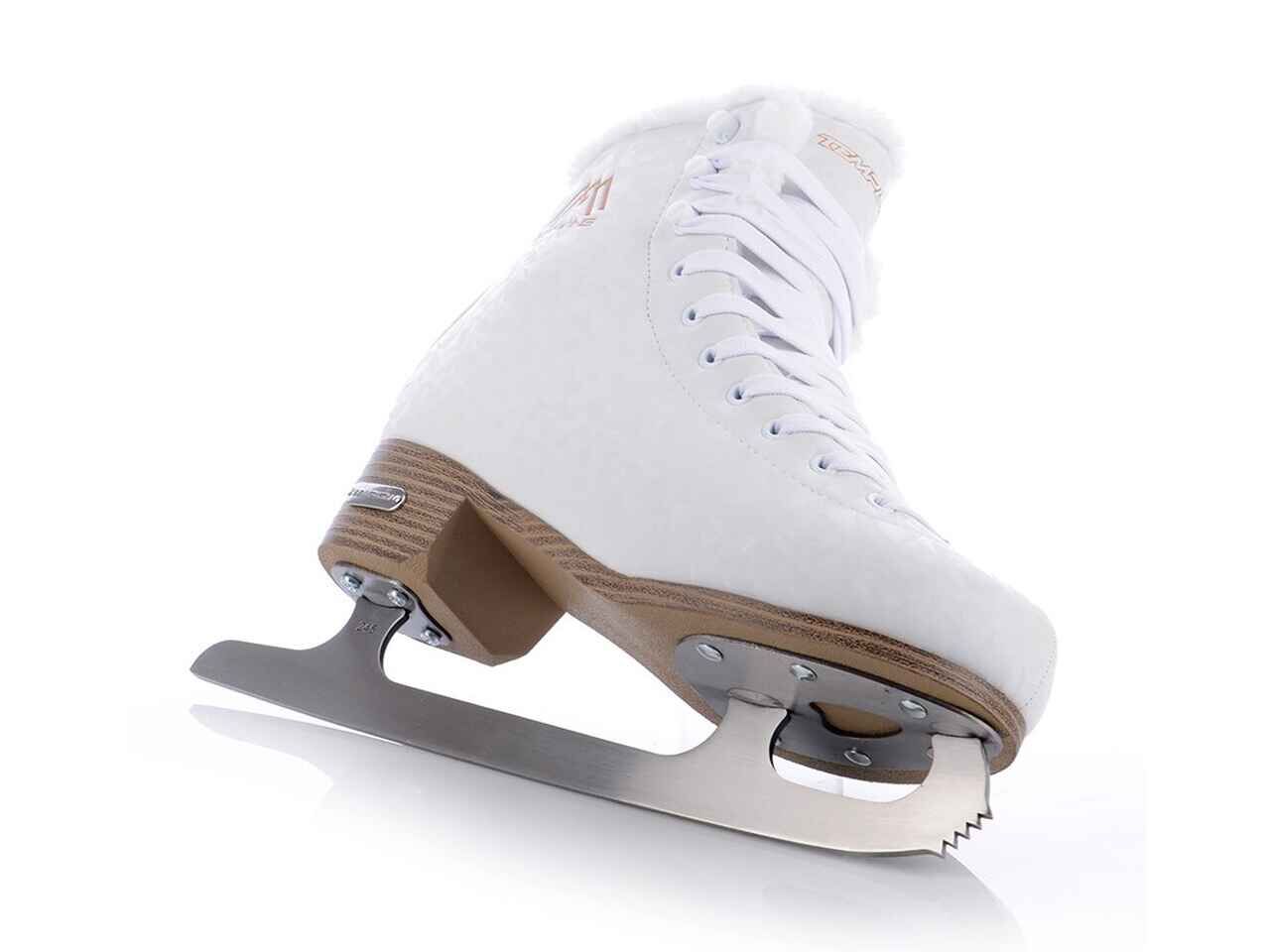 - Лезвие: Узкое и длинное с зубцами на передней части (зубцы помогают выполнять прыжки и сложные элементы).