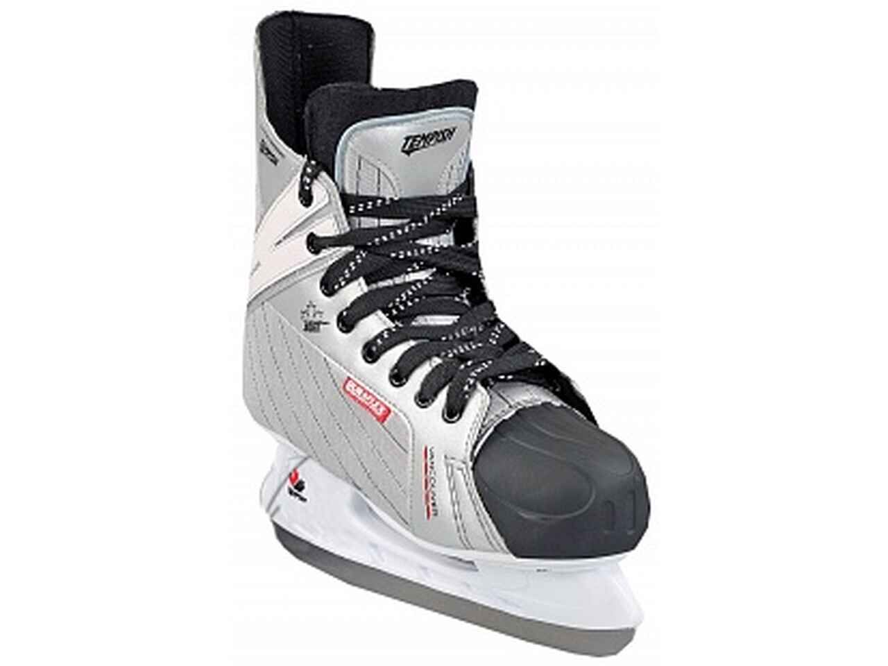 - Ботинок: Очень жесткий, с усиленной защитой (часто из пластика или композитных материалов) для предотвращения травм при ударах шайбой или клюшкой.