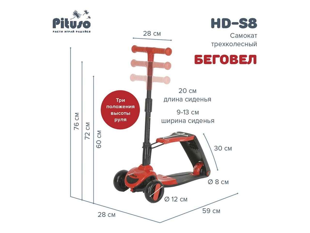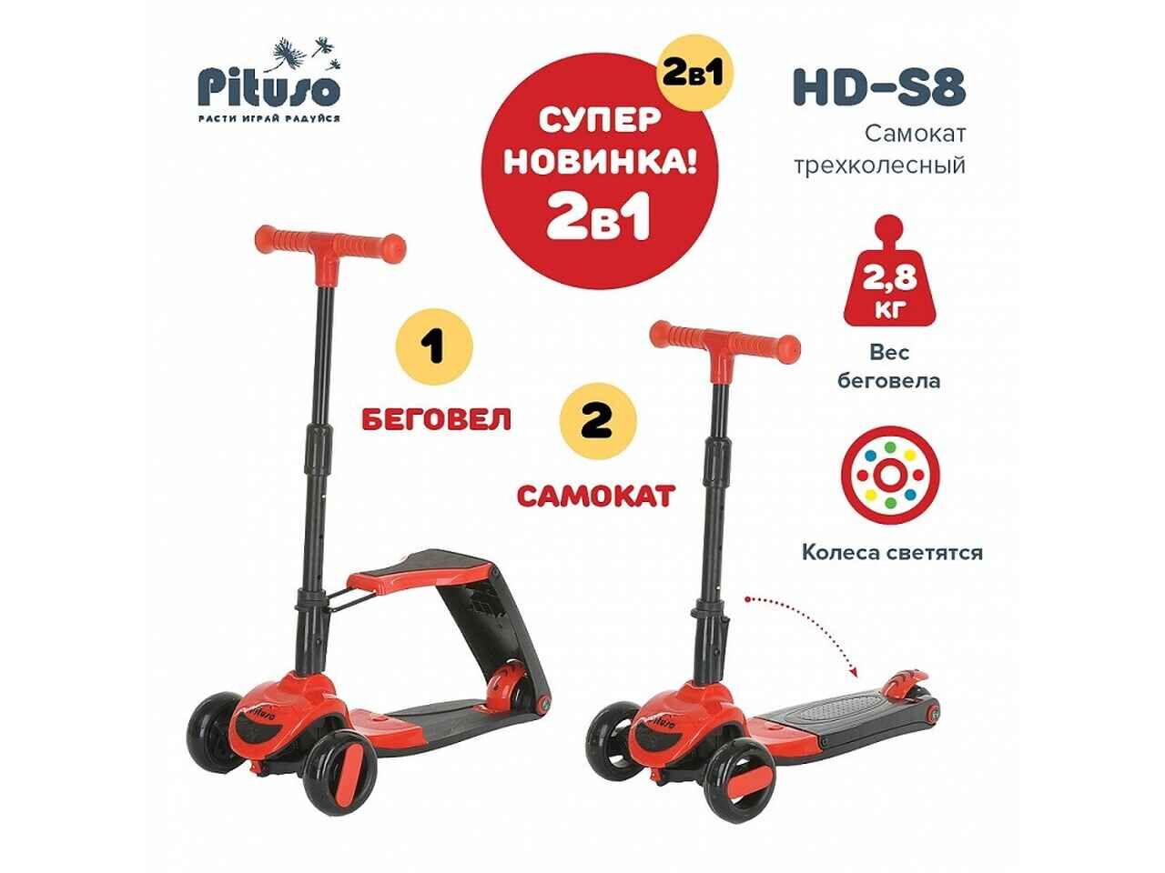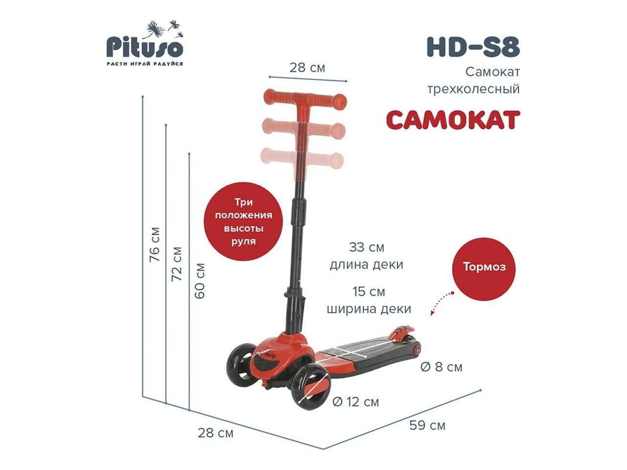 Трехколесный самокат Pituso HD-S8 (красный)