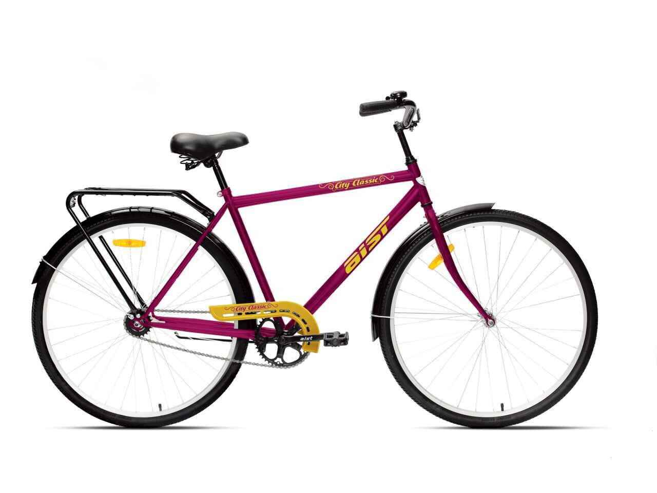 Городской велосипед предназначен для поездок в черте города. Особенности − несколько скоростей, наличие переднего амортизатора, мягкое широкое сиденье, высокий руль, регулируемый по высоте и наклону.