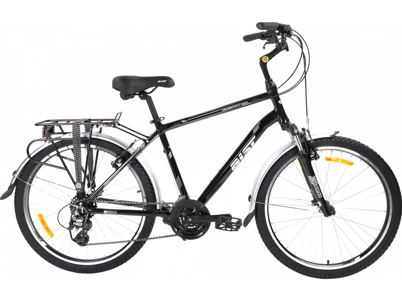 Городской велосипед предназначен для поездок в черте города. Особенности − несколько скоростей, наличие переднего амортизатора, мягкое широкое сиденье, высокий руль, регулируемый по высоте и наклону.