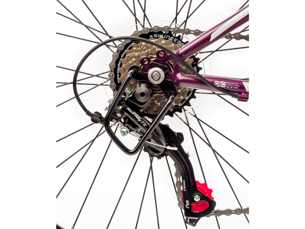 Велосипед собран на базе проверенных компонентов: переключатель скоростей Shimano, прочная цепь KMC и жёсткая стальная вилка. Это гарантирует, что техника не подведёт в самый ответственный момент и потребует минимума обслуживания.