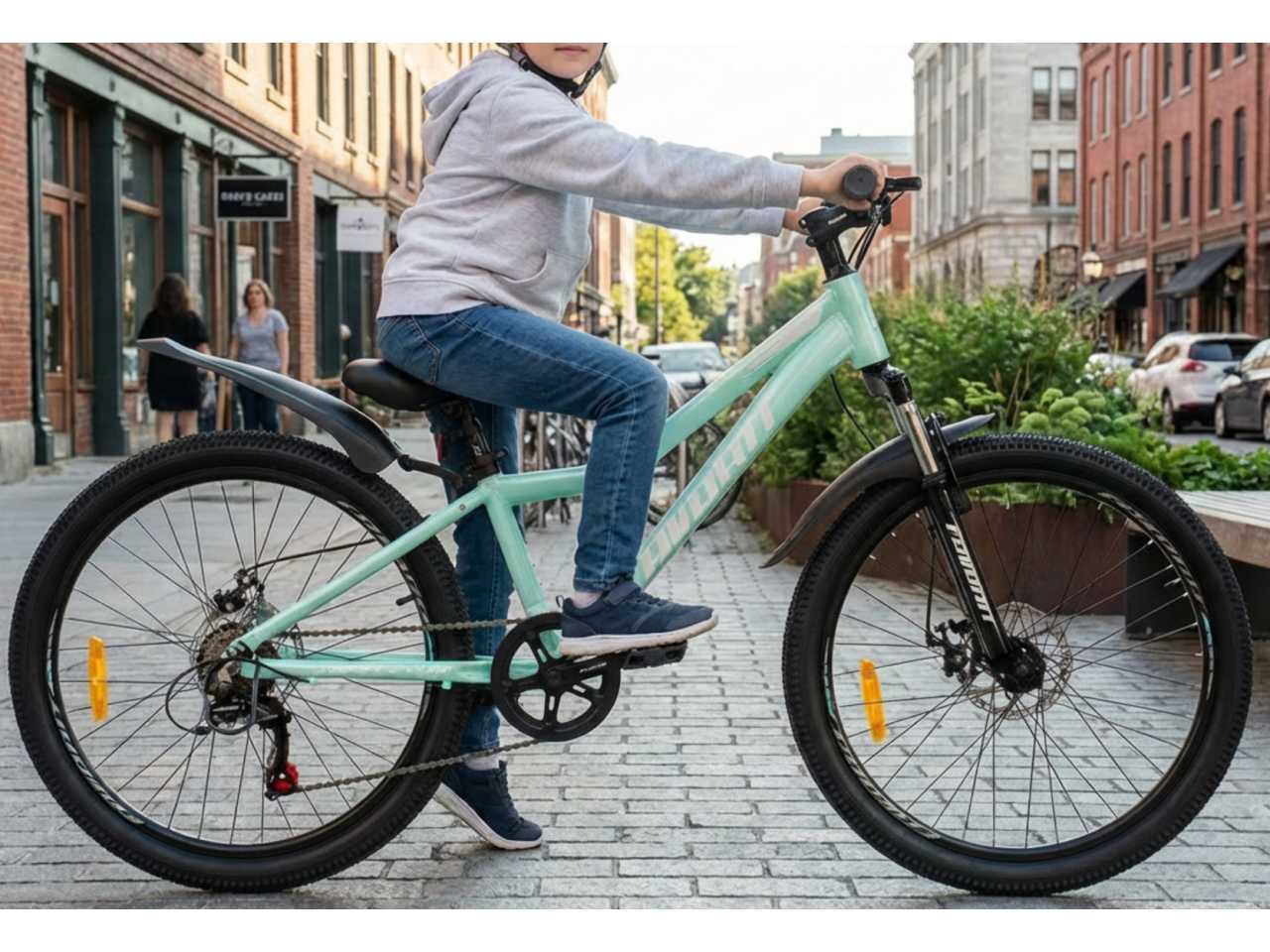 Дисковые тормоза на обоих колёсах — это твоя безопасность. Они отлично тормозят, даже если на пути лужа или грязь. Ты сможешь уверенно контролировать скорость на спусках и быстро останавливаться, когда это нужно.
