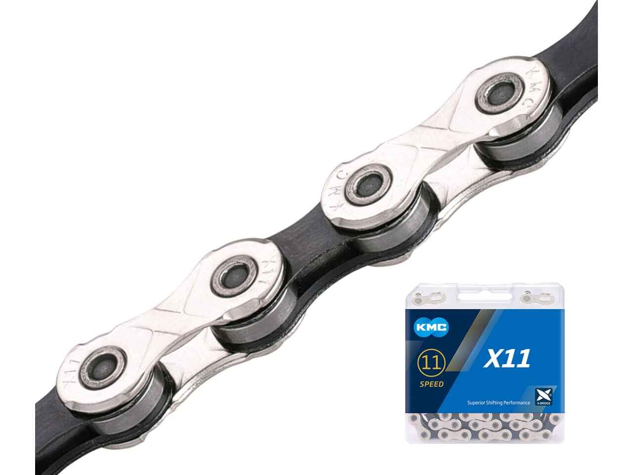 Цепь KMC X11, 1/2X11/128X118L (в боксе), серебристо-черная, X11-118SLBK